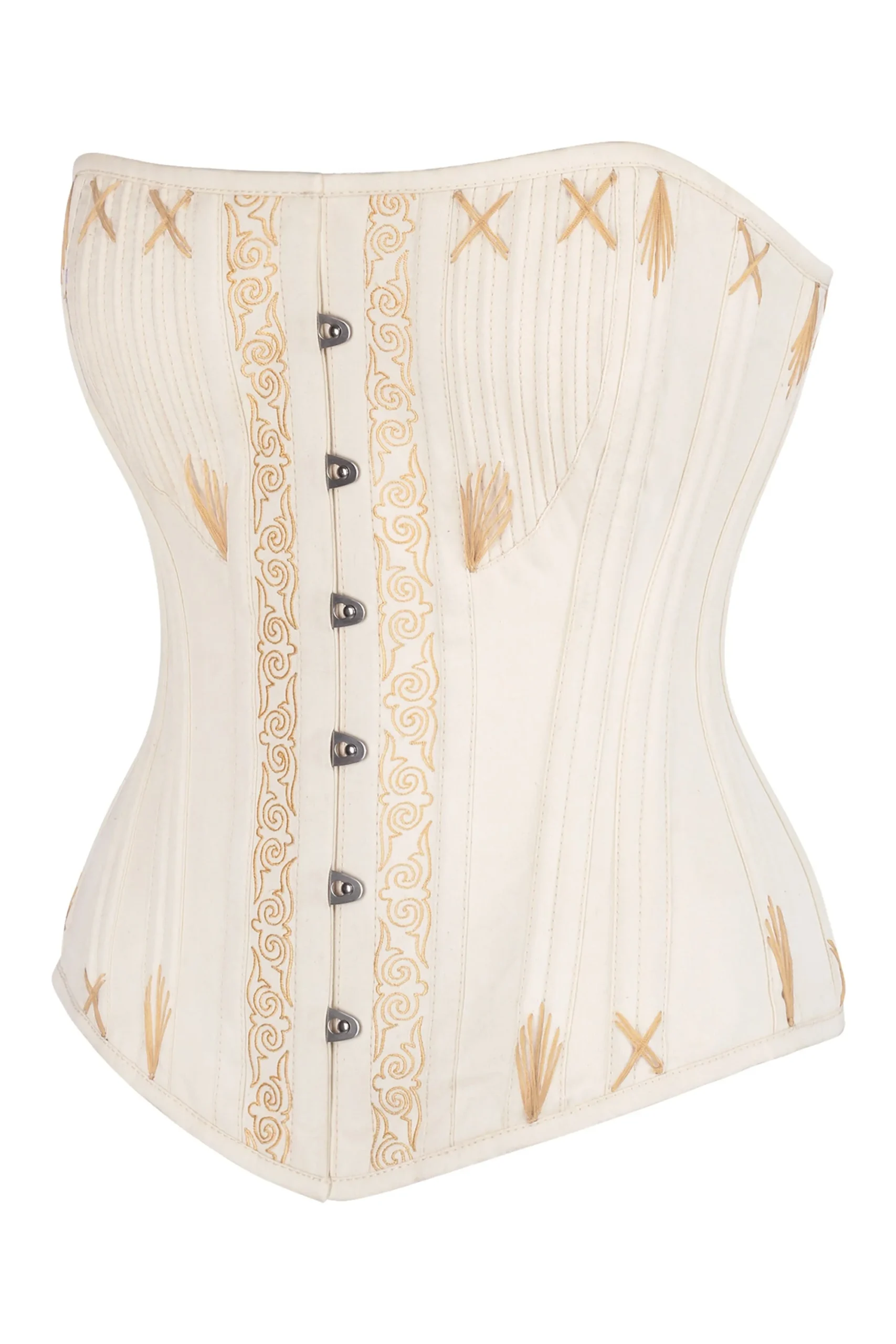 Beige Steel Boned Overbust Corset with Decorative Flossing