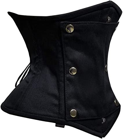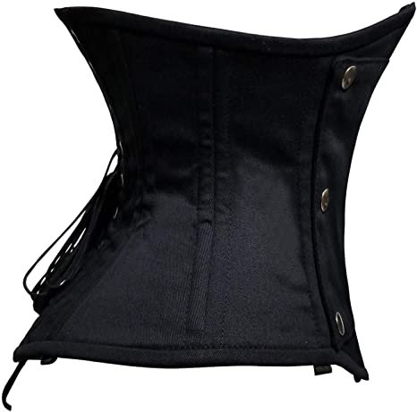Black Cotton Underbust Waist Trainer Corset With Zipper Front