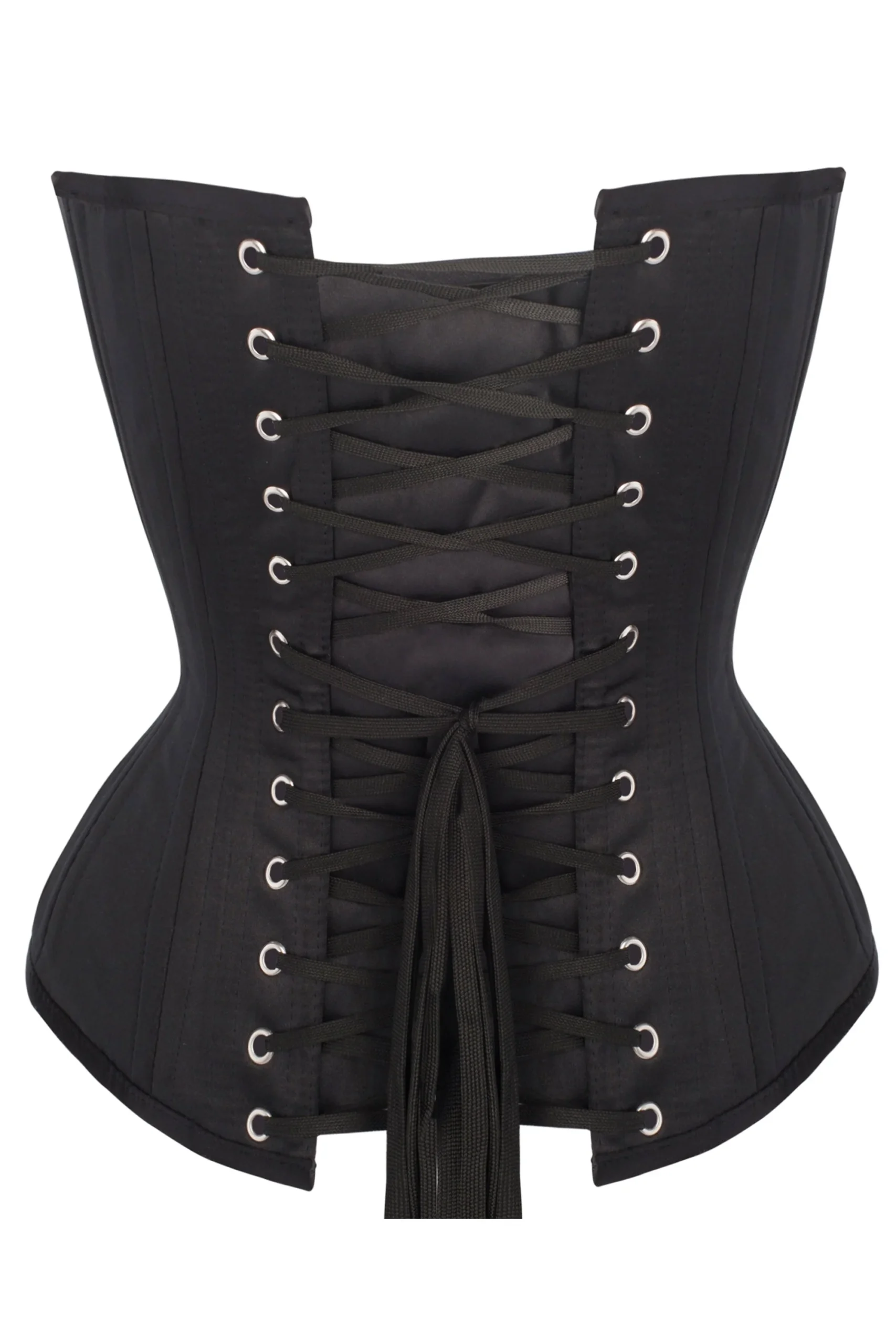 Made from 100% polyester on the outside with a 100% cotton twill lining, this corset feels soft against the skin while remaining durable. The fabrics ensure long-lasting wear and comfort during waist training or fashion styling. The corset holds its shape while providing a polished, gothic appearance.