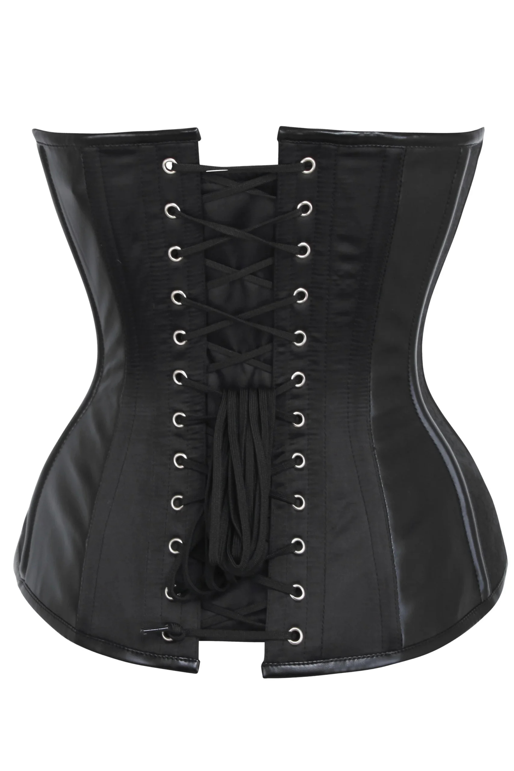 Black Brocade Gothic Overbust Corset with Plunge Neckline