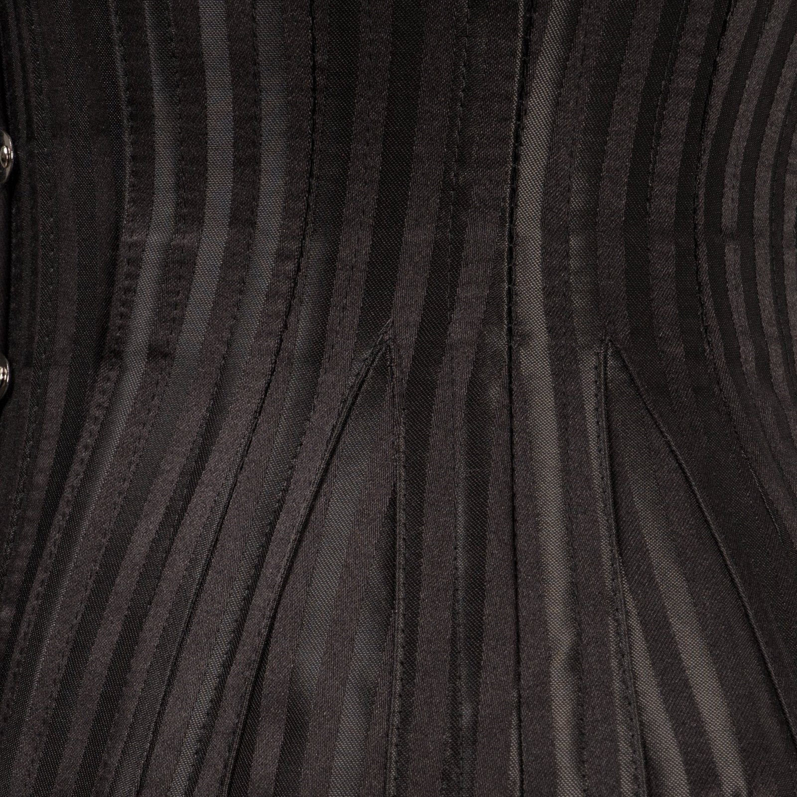 The Waist Training Black Striped Underbust With Gores has 18 spiral steel bones, each 7mm wide, that allow flexible movement while holding shape. Alongside them, 4 flat steel bones give solid back support. A steel busk at the front makes fastening simple and secure. The busk length varies depending on corset size, measuring 21cm for sizes 20″-24″ and 24cm for sizes 26″-58″.